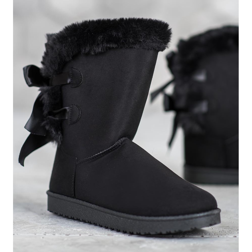 High Mukluks med rosetter i svart är eleganta och snygga skor som passar perfekt för en modern kvinnas behov. Isolerade med mjuk päls kombinerar dessa snöstövlar för kvinnor komfort och feminin charm, vilket gör dem till det perfekta valet för kallare dagar.