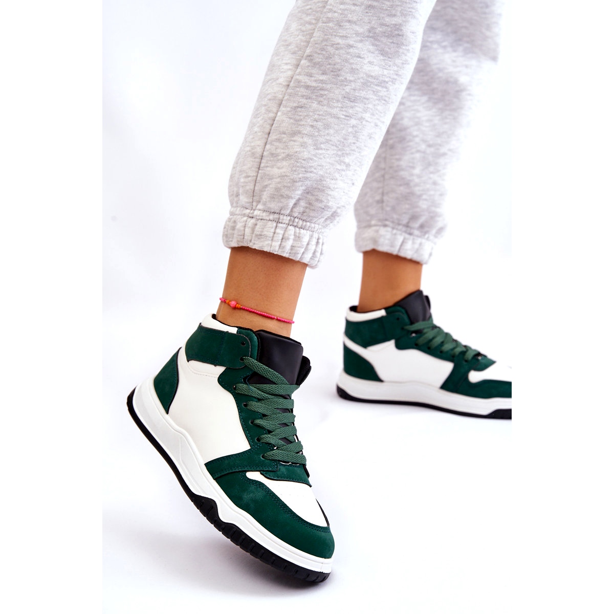 Detaljer: Höga damsportskor, sneakers, vita och gröna