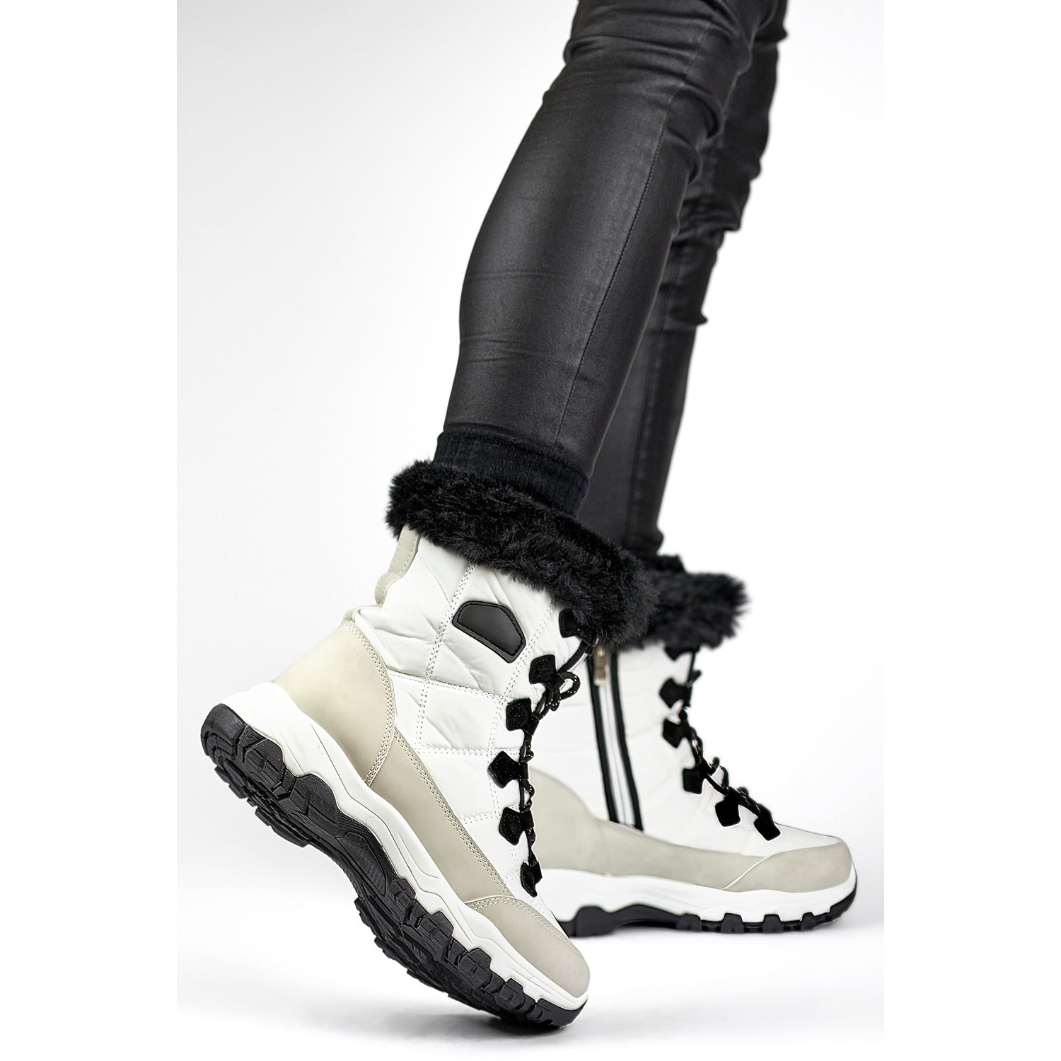 Detaljer: Höga, isolerade snöstövlar, sport vinter, isolerade damstövlar, tjockt isolerade stövlar vit