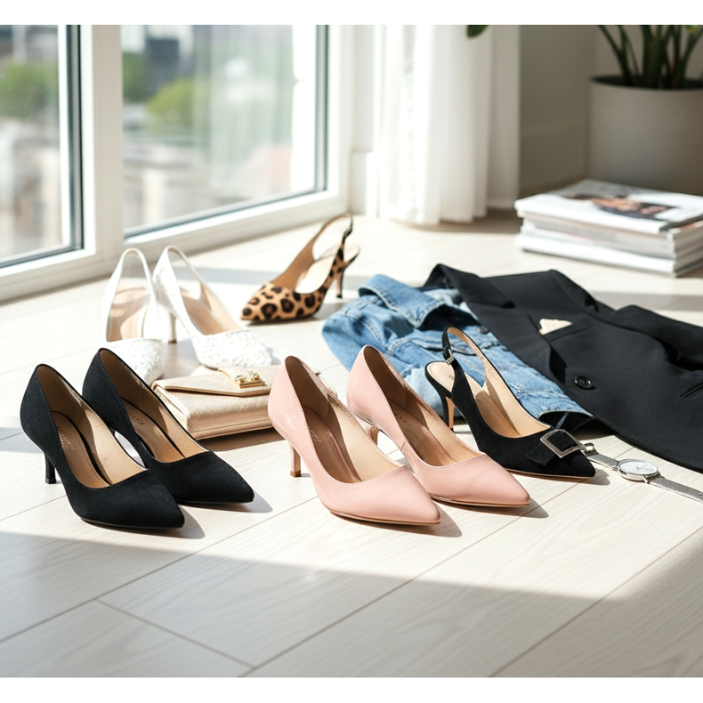 Klassiska svarta kattklackar är ett absolut måste i kontorsgarderoben. De matchar allt – kostymer, pennklänningar, cigarettbyxor och midikjolar. Deras mångsidighet är oslagbar.