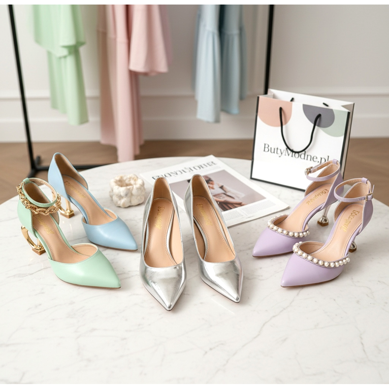 2026 års trender inom klackar för kattungar går mot flera estetiska uttryck. Först av allt, den spetsiga tån - klassisk och elegant, den förlänger foten optiskt. För det andra, guld eller silver metalliska klackar för kattungar - för den som vill glänsa. För det tredje, pastellfärger - lila, ljusblå, mint - i linje med vårens färgtrender.