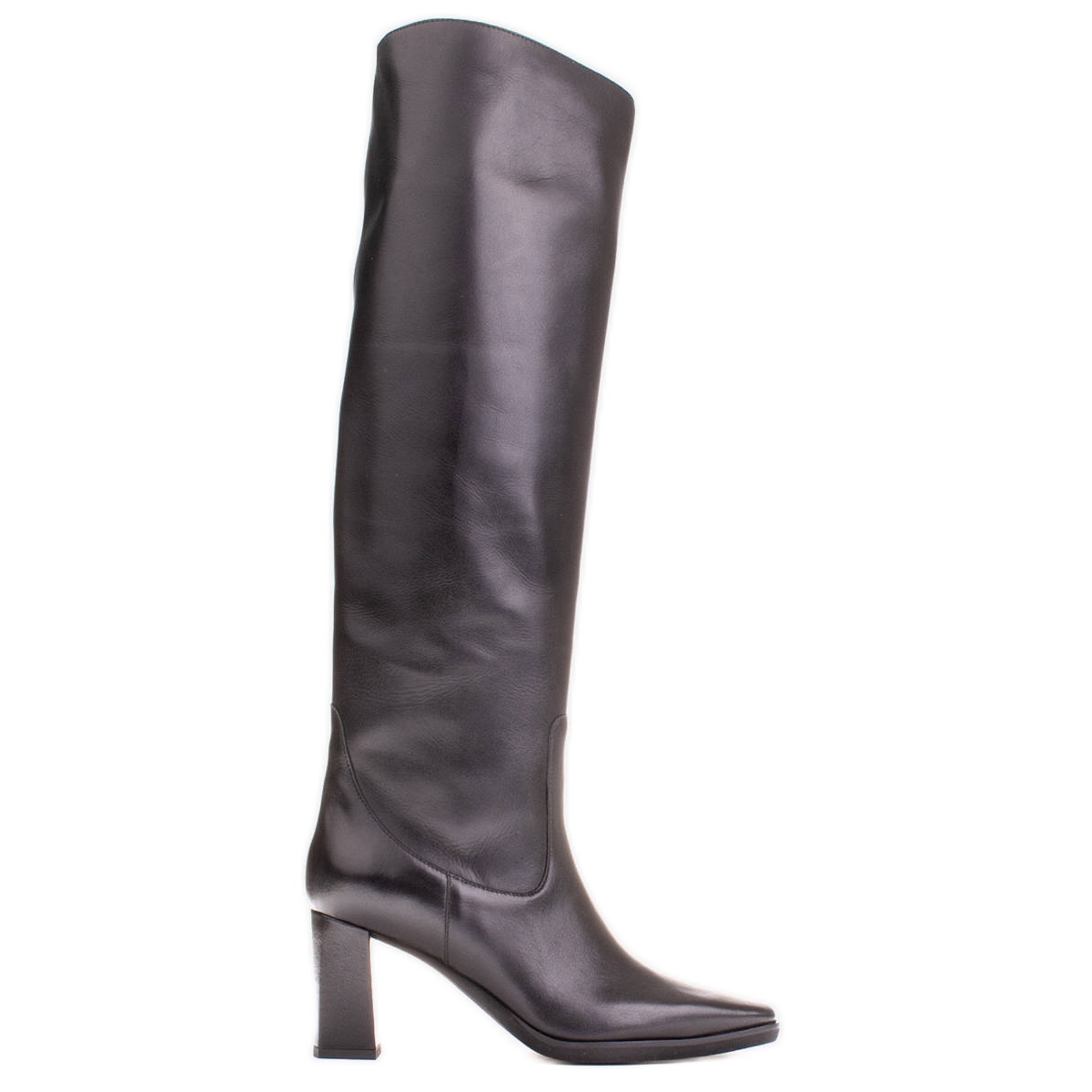Med en total höjd på 53 cm och en omkrets på ovandelen (i storlek 37) på 40 cm anpassar sig dessa stövlar till olika silhuetter, och deras klassiska snitt med fyrkantig tå ger dem en sublim karaktär. Klackhöjden är 7,5 cm, vilket gör modellen bekväm och ger samtidigt elegans till varje styling.