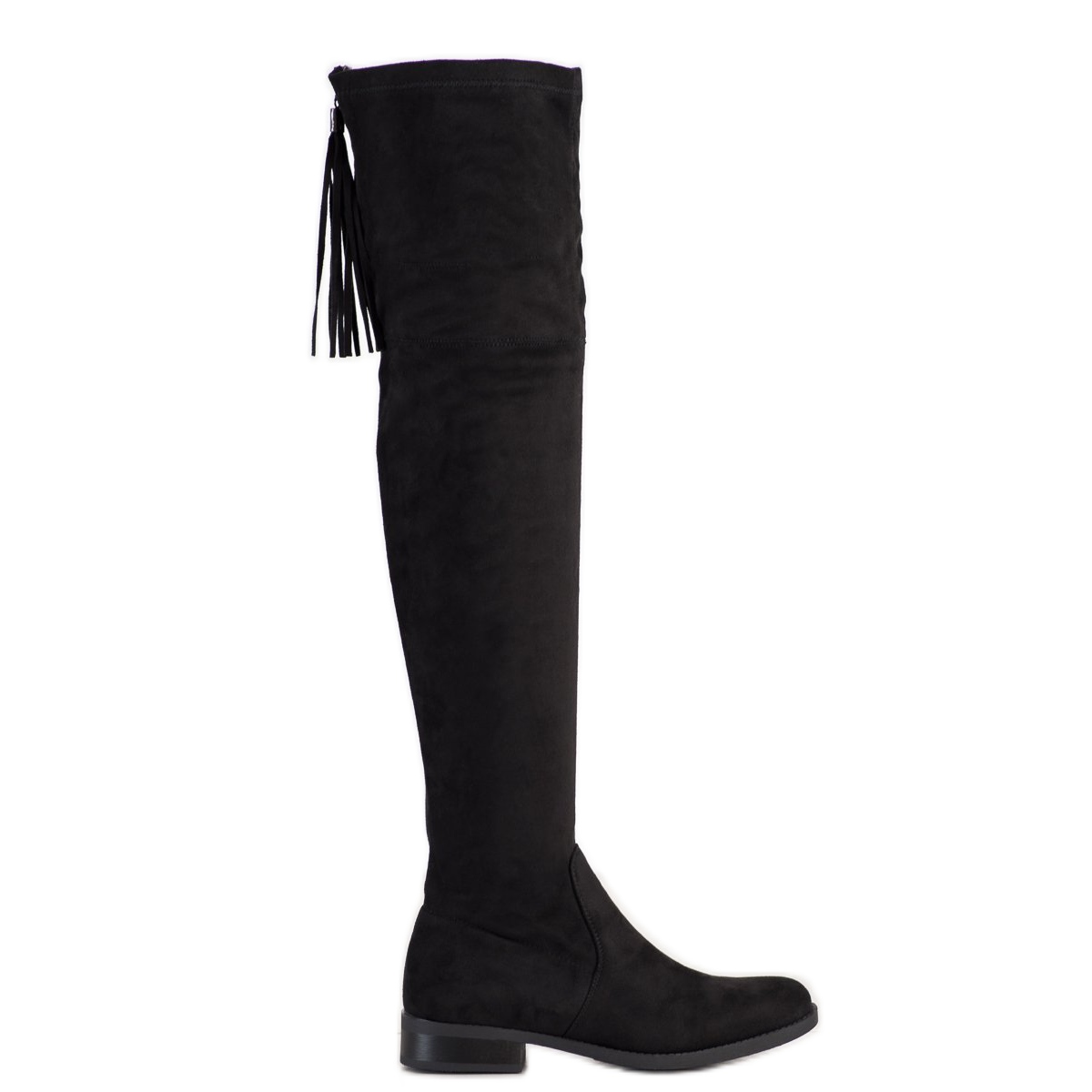 Detaljer: Forever Folie Höga lårstövlar med fransar svart