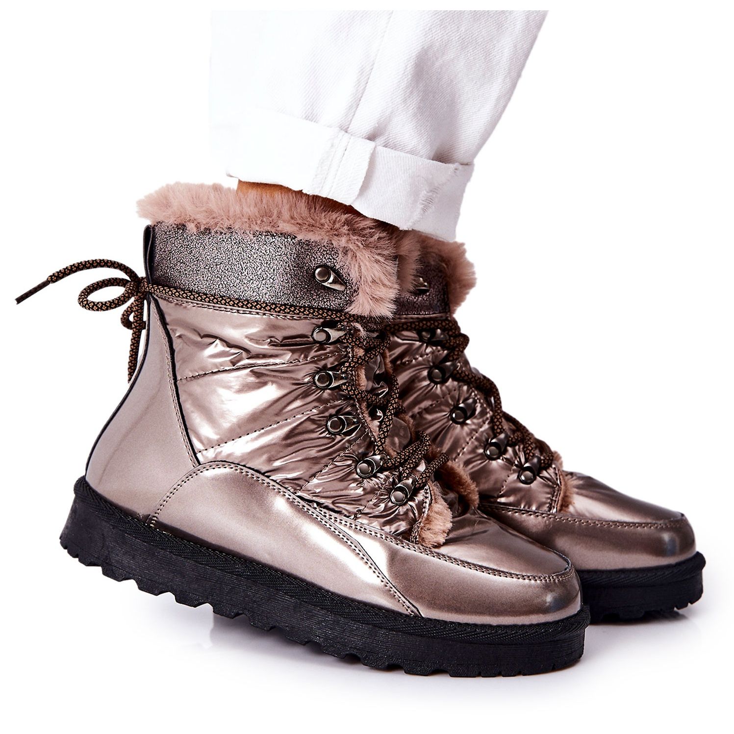 Detaljer: POTOCKI Höga pälsisolerade snöstövlar Golden Sneezy gyllene