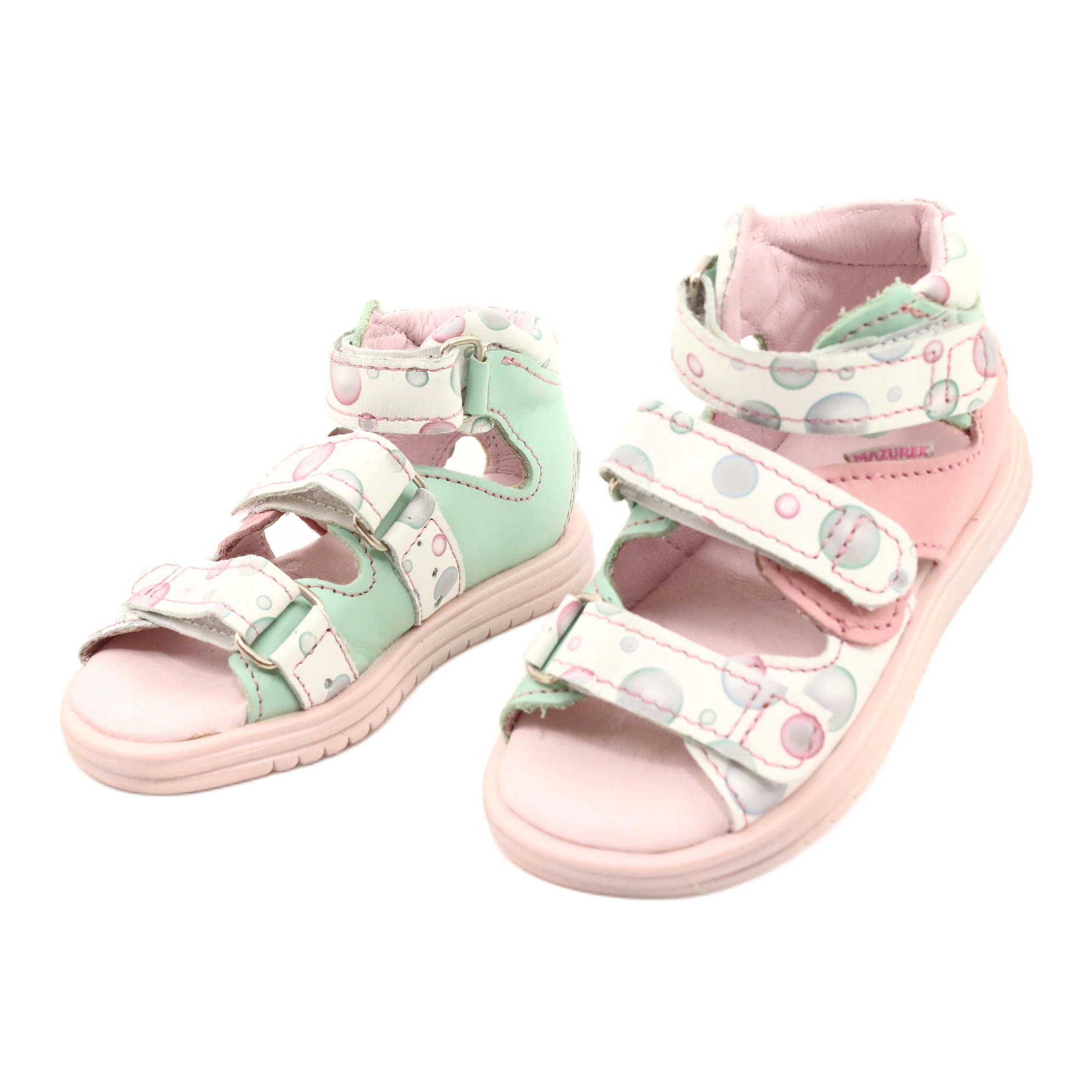 Detaljer: Höga profylaktiska sandaler Mazurek 1291 vit rosa grön