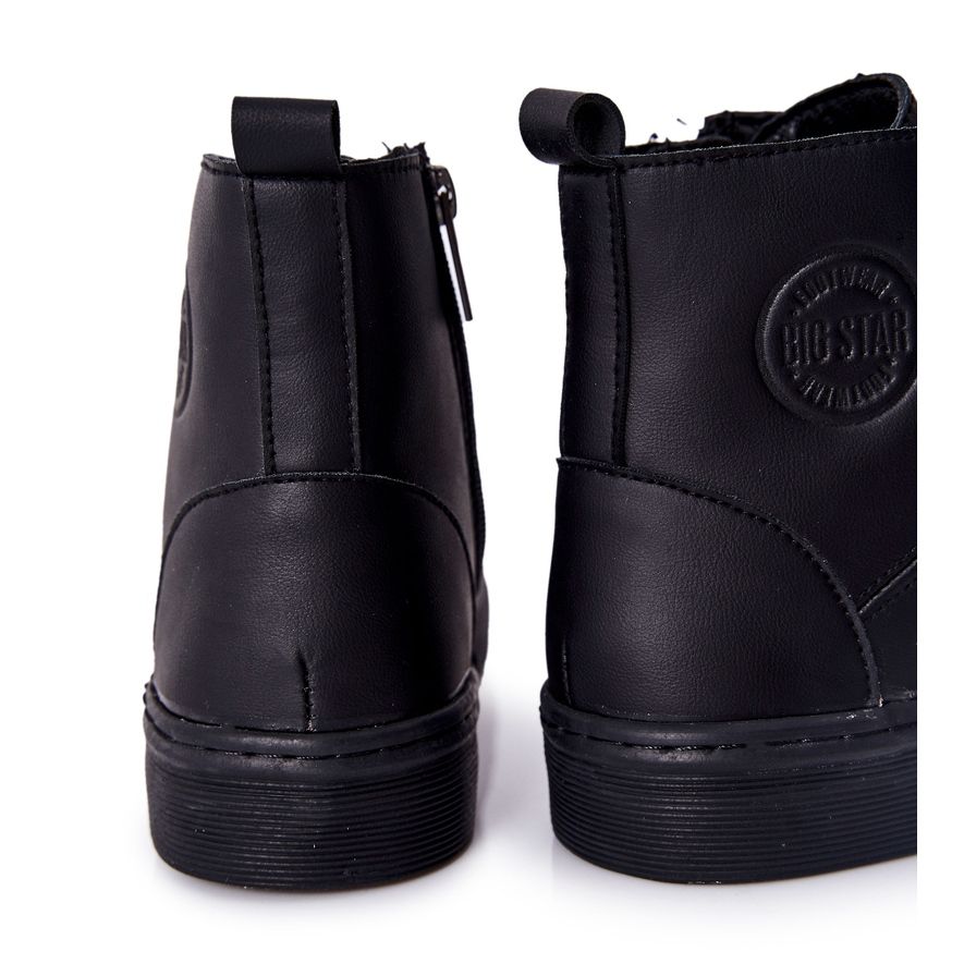 Den övre delen av dessa sneakers är gjord av ekologiskt läder av hög kvalitet, vilket säkerställer inte bara ett attraktivt utseende, utan också hållbarhet. En ytterligare fördel är den imponerande märkeslogotypen Big Star placerad på ovandelen, vilket ger dessa skor karaktär. Den höga ovandelen (13 cm) framhäver inte bara det fashionabla snittet, utan ger också stöd och komfort när du bär den.
