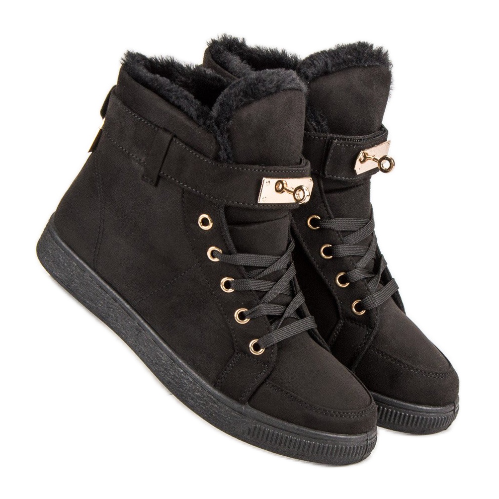 Höga sneakers i svart mocka är ett måste i alla kvinnors garderob, som kombinerar moderiktig design och komfort att bära. Dessa sneakers är gjorda av högkvalitativ eko-mocka och ser inte bara bra ut utan är också miljövänliga. Gulddekorationer ger elegans, vilket gör dem perfekta för både vardagsstyling och mer formella tillfällen.