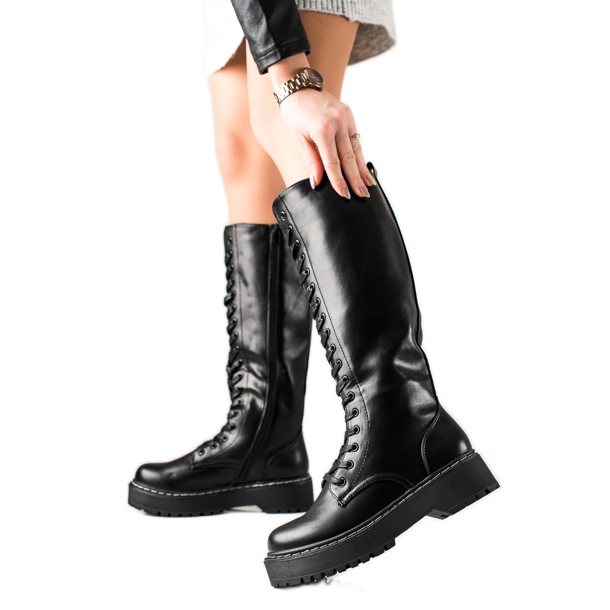 Vi presenterar High Laced Workers från den välkända tillverkaren Evento - det perfekta komplementet till alla höst- och vinterstyling. Dessa svarta damstövlar kännetecknas av en avslappnad och rockig stil, vilket gör dem perfekta för dagligt bruk.