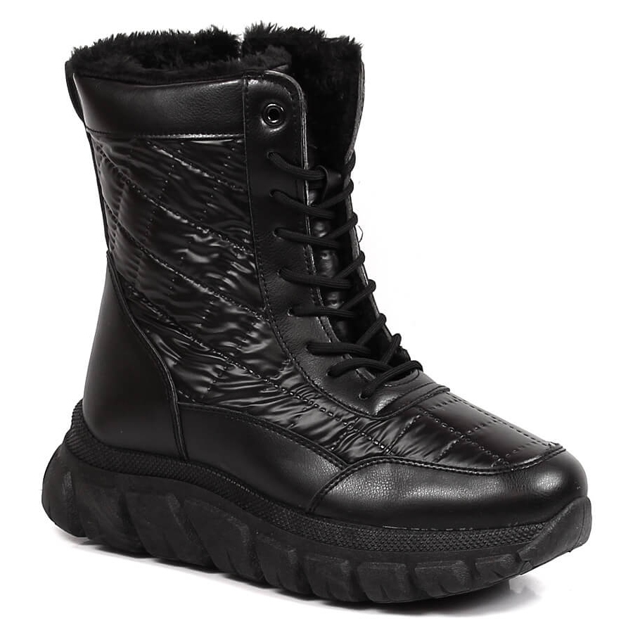 Detaljer: Höga snöstövlar för kvinnor med päls svart Vinceza