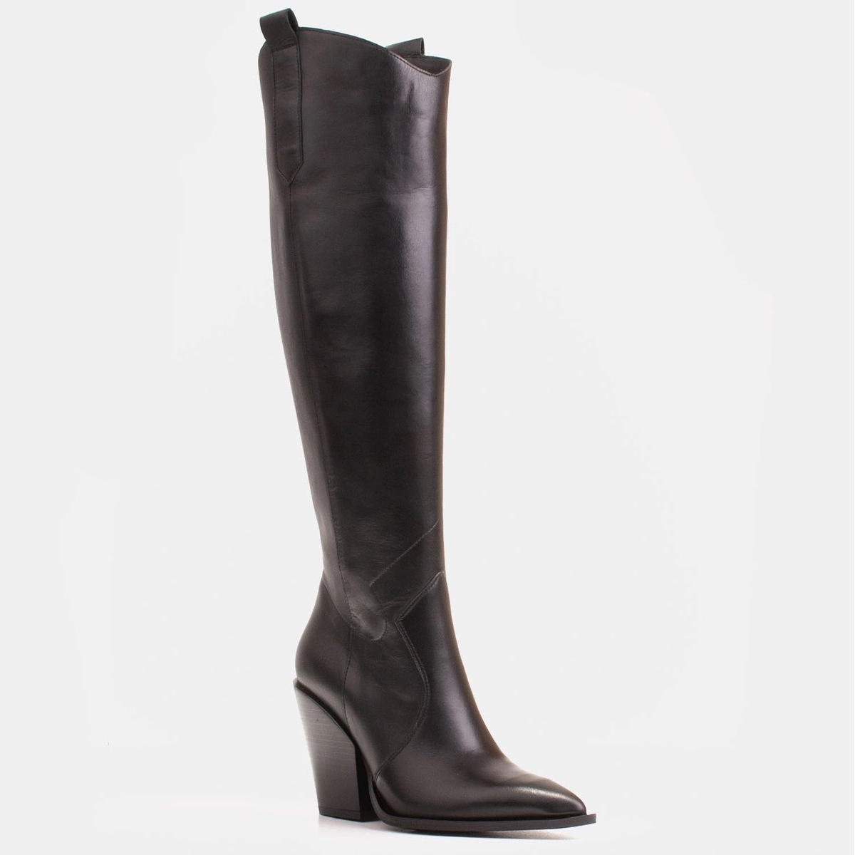 Detaljer: Marco Shoes Höga stövlar för kvinnor, cowboystövlar i äkta läder svart