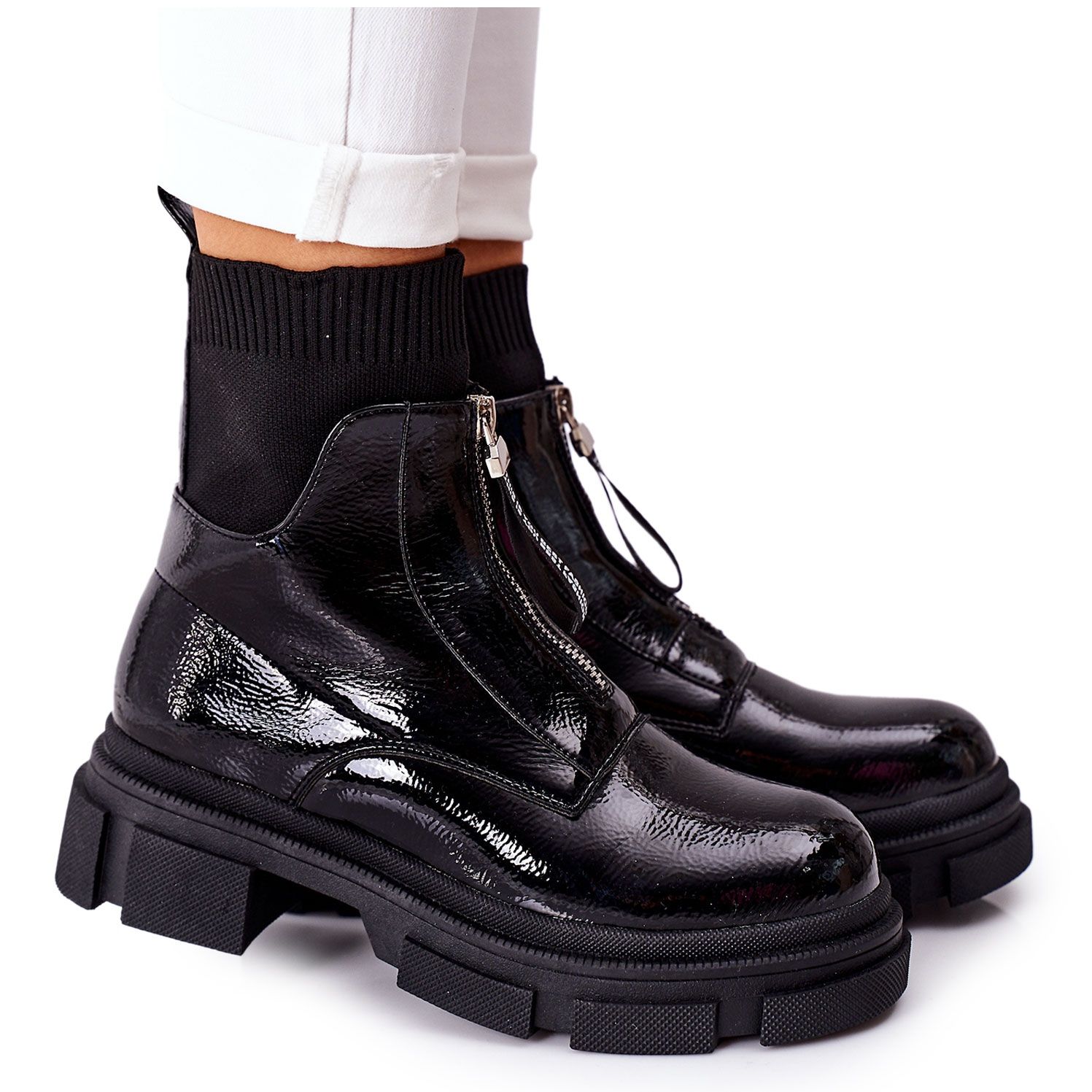 Vi presenterar Black Chicago High Boots på en massiv plattform - den perfekta kombinationen av elegans och komfort. Dessa extremt snygga stövlar är gjorda av ekologiskt patentläder, vilket garanterar inte bara ett attraktivt utseende, utan också hållbarhet.