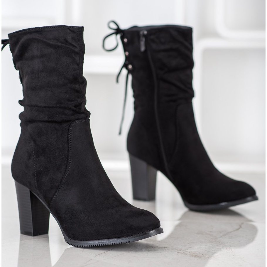 Deras universella svarta färg gör att de passar perfekt med både avslappnade och eleganta stilar - de kommer att vara ett idealiskt val för vardagliga utflykter och fester. Tack vare snörning och blixtlås går det snabbt och smidigt att ta på och av dem.