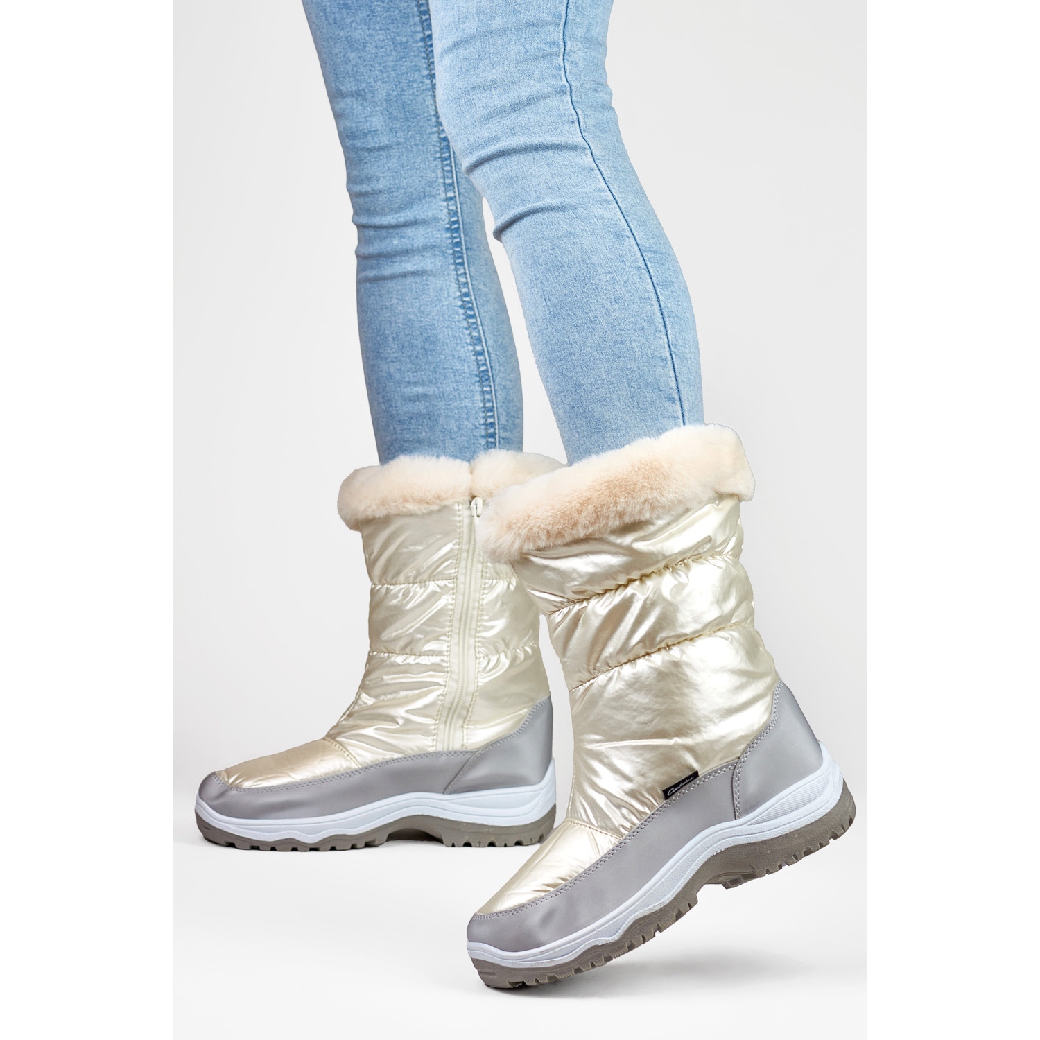 - Modell: kvinnors höga snöstövlar med päls (ecru/grå)
