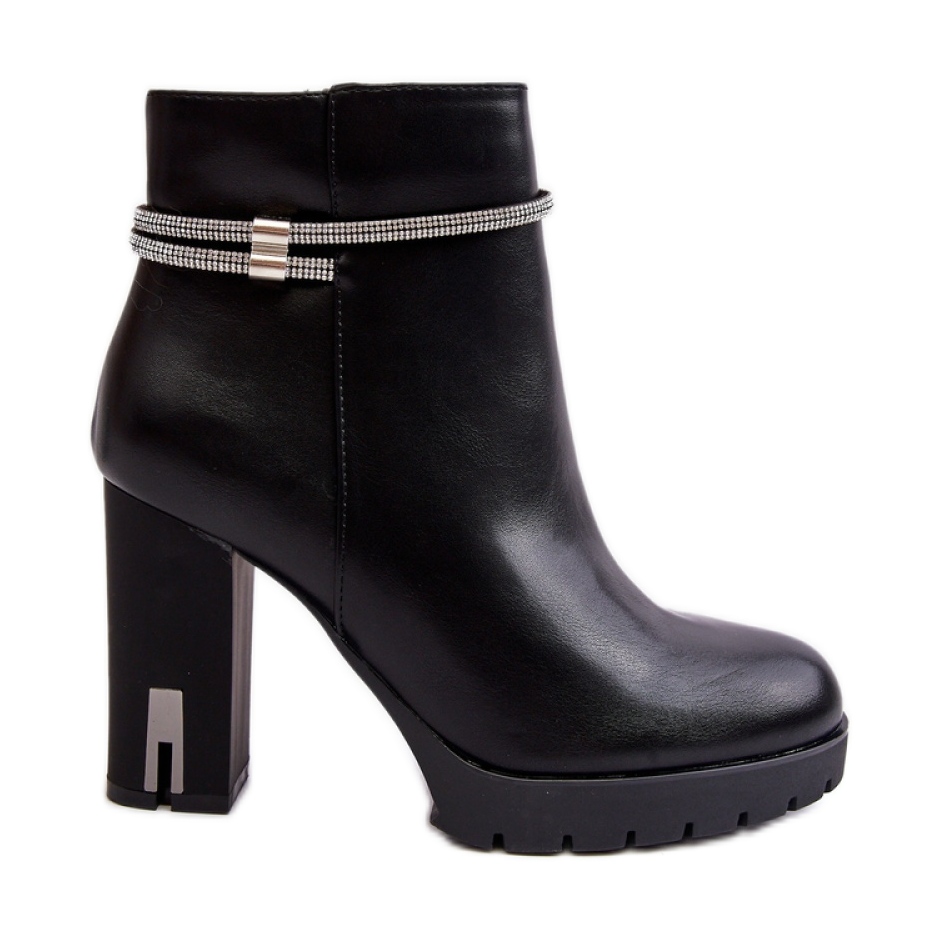 Detaljer: Högklackade ankelboots för kvinnor med svart dekoration