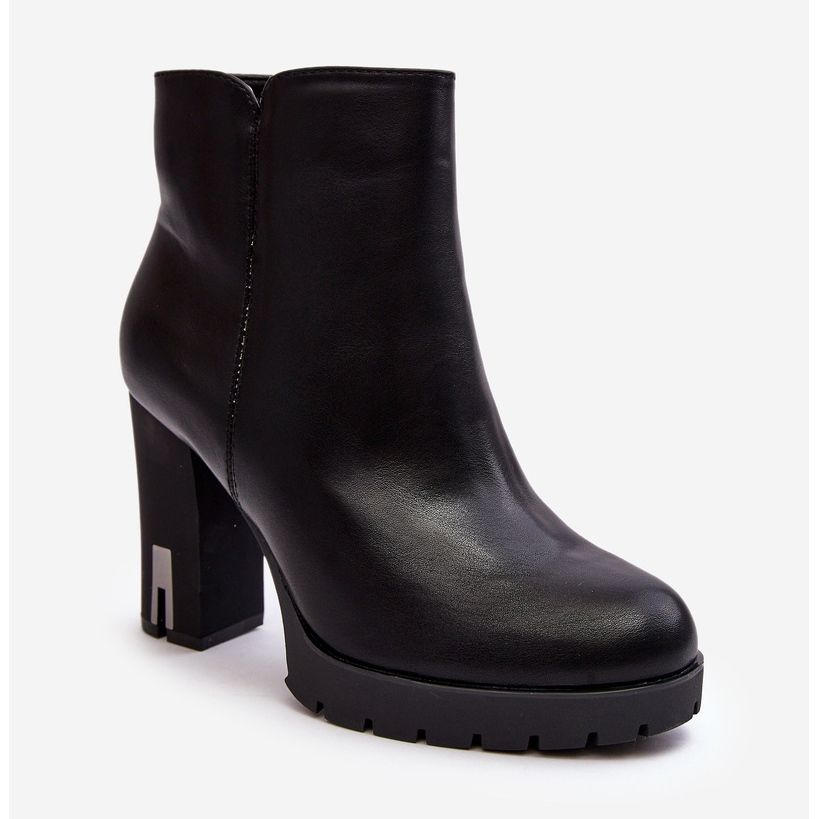 Detaljer: Högklackade ankelstövlar för kvinnor med dragkedja, svart Rasoda