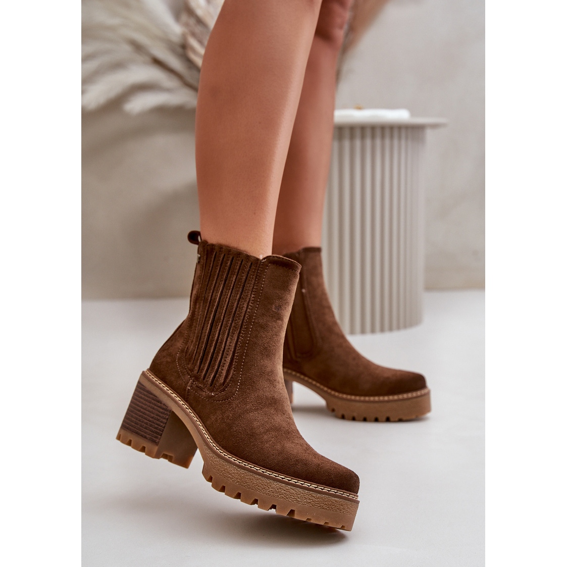 Upptäck den fantastiska komforten och stilen tack vare kvinnors stövlar i Nevitas Bar. Dessa mörkbruna stövlar av hög kvalitet är det perfekta valet för svalare höst- och vinterdagar. En stabil häl i form av en 7 cm hög stolpe ger inte bara ett elegant utseende utan också stabilitet när man bär.