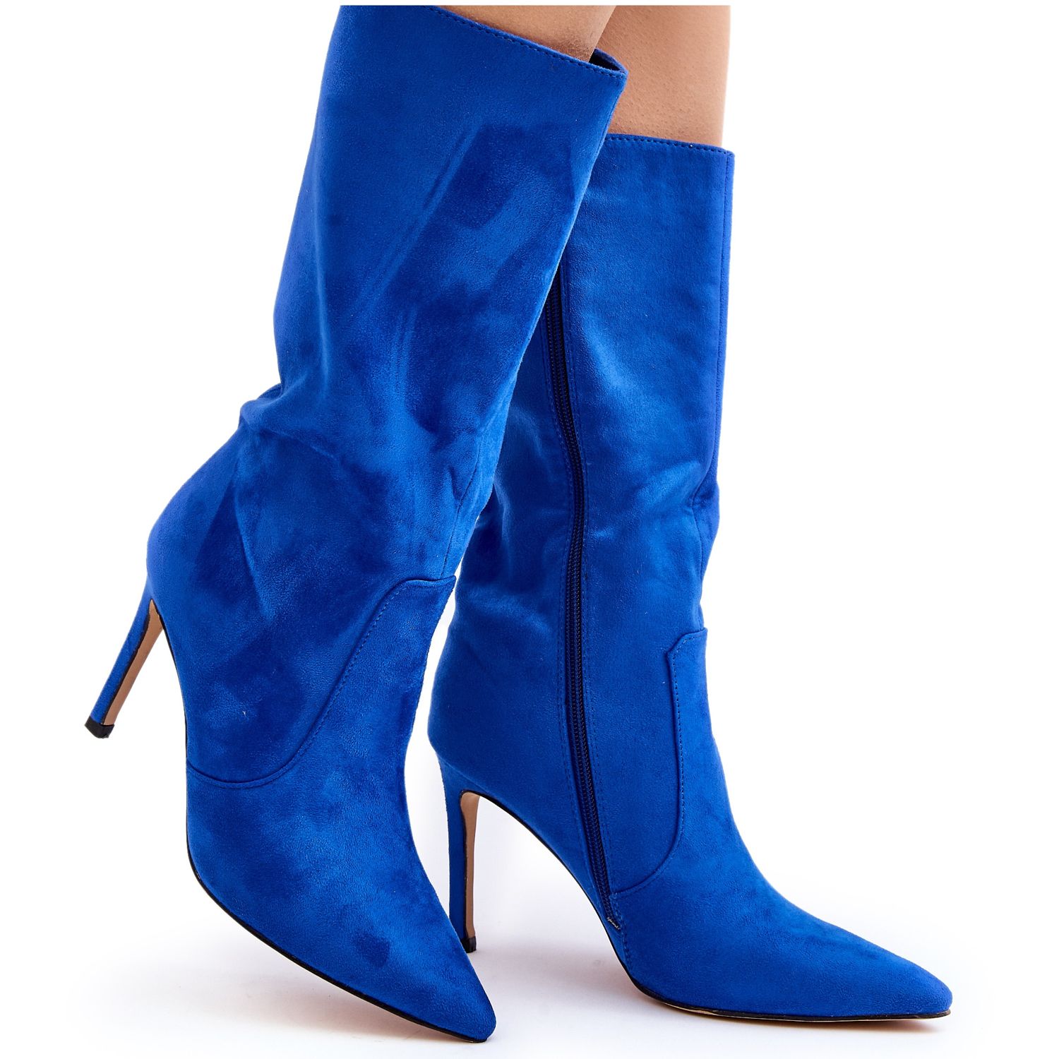 Klackhöjden på 9,5 cm är den perfekta kompromissen mellan elegans och komfort, vilket gör att du kan spendera hela dagen i dessa stövlar utan att känna dig trött. Den blå färgen tillför fräschör och originalitet till stilar och höjer dem till en helt ny nivå. Dessutom är den beige sulan en fin färgaccent som kompletterar hela designen.