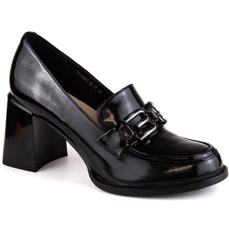 Kvinnors svarta högklackade lackskor Vinceza 63509 är ett utmärkt val för kvinnor som värdesätter elegans och komfort. Tillverkade av högkvalitativt naturligt läder, dessa snygga skor gläder sig med sin tidlösa svarta färg, som är perfekt för olika kombinationer, både vardagliga och formella.