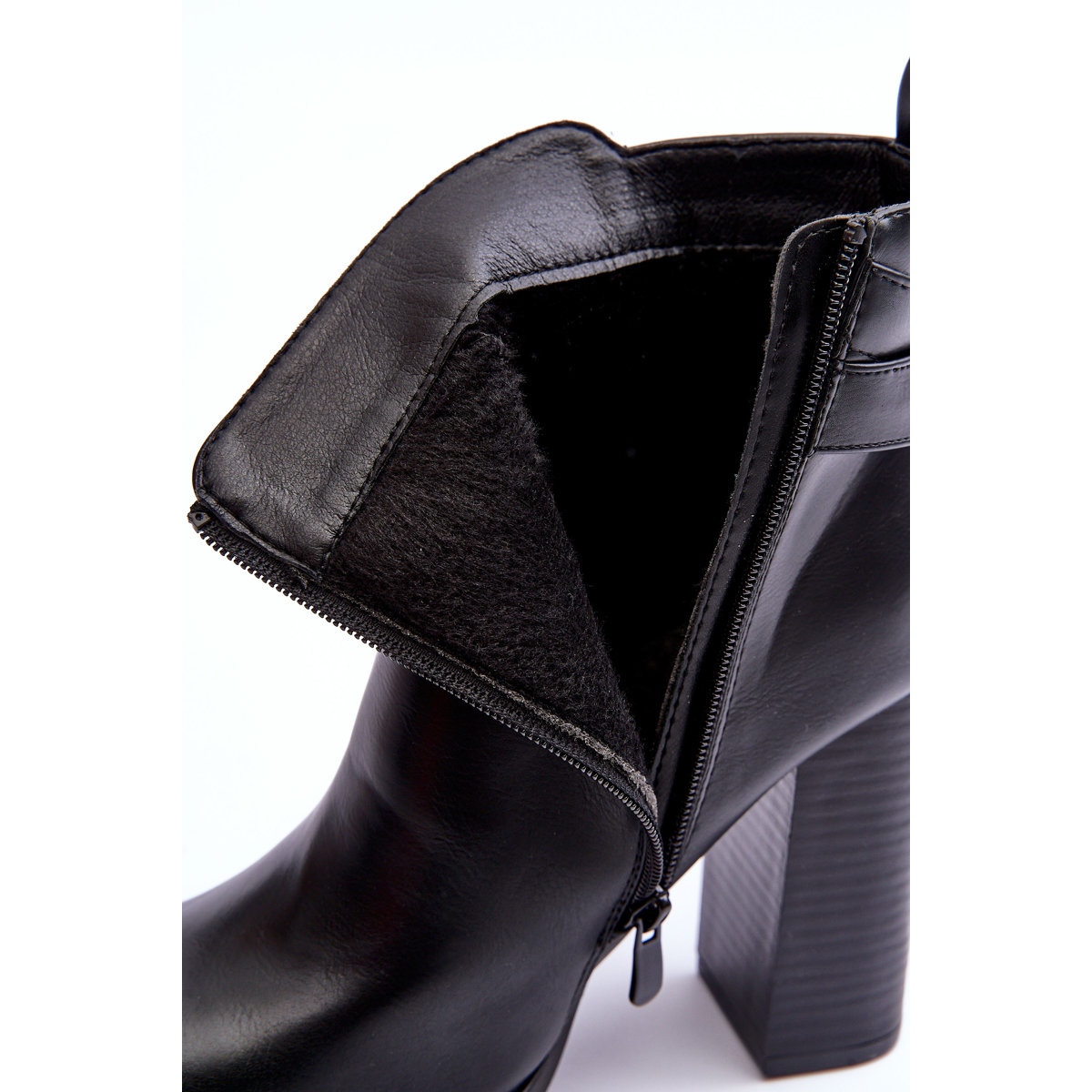 Dessa svarta ankelboots gjorda av högkvalitativt eko-läder drar inte bara till sig uppmärksamhet med sitt uttrycksfulla utseende, utan säkerställer också en oklanderlig bärkomfort. Klackhöjden på 11 cm förlänger elegant benen, och den stabila stolpen garanterar komfort även under hela dagen. Effektiv påtagning av skor är möjlig tack vare dragkedjan monterad på sidan av ovandelen, som är diskret och samtidigt funktionell.