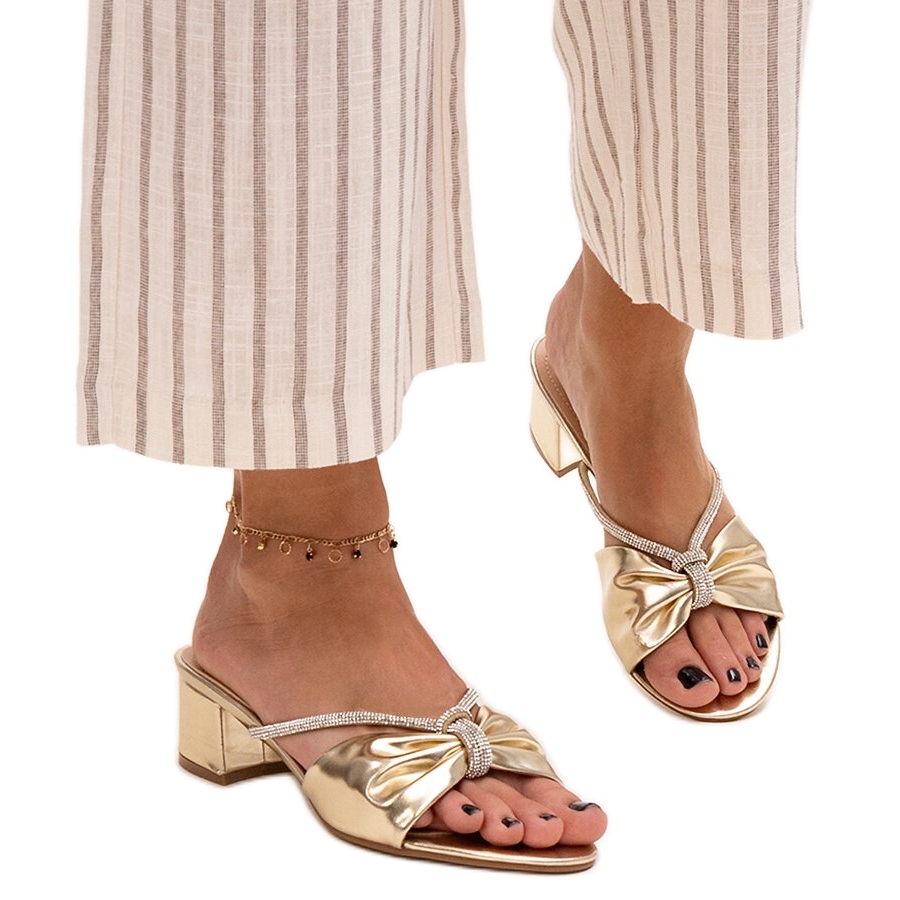 Detaljer: Högklackade mulor dekorerade med Anbrani zirkoner gyllene
