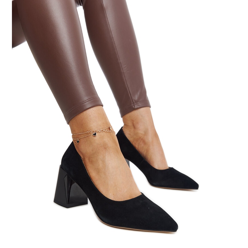 Pumparna är gjorda av naturligt mocka läder av hög kvalitet, som perfekt passar in i de senaste trenderna. Klassiska svarta färger gör att de matchar många stilar, från eleganta klänningar till avslappnade uppsättningar med jeans. Dessutom garanterar läderinsatsen tröst hela dagen, och en solid plastsula säkerställer hållbarhet och god vidhäftning.