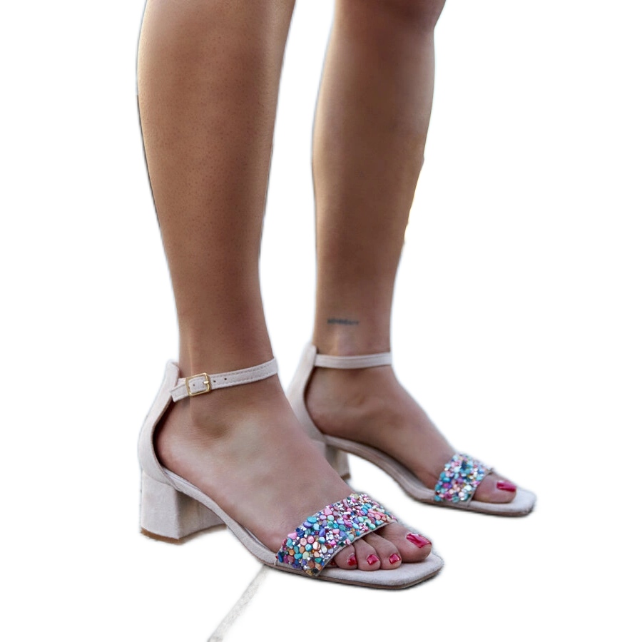 Information: Högklackade sandaler med färgglada Ghuson-stenar beige