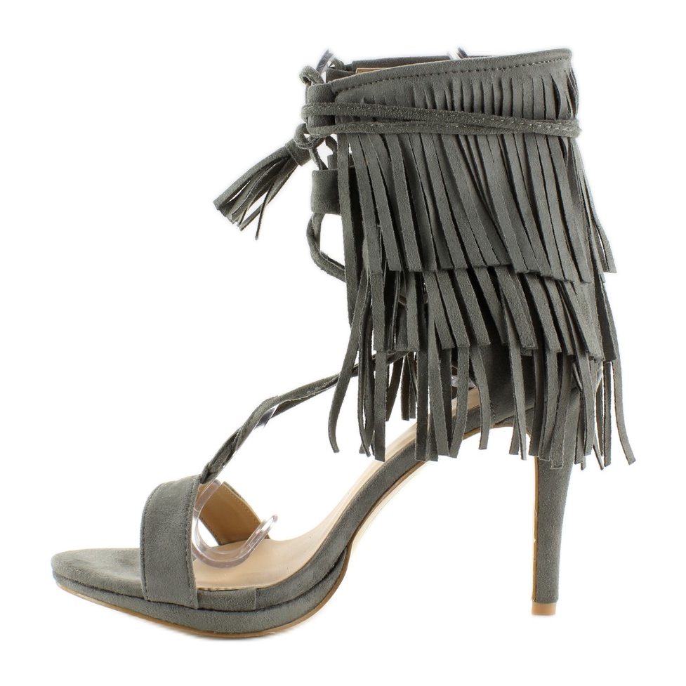 Inna marka Högklackade sandaler med fransar 8125 Grå
