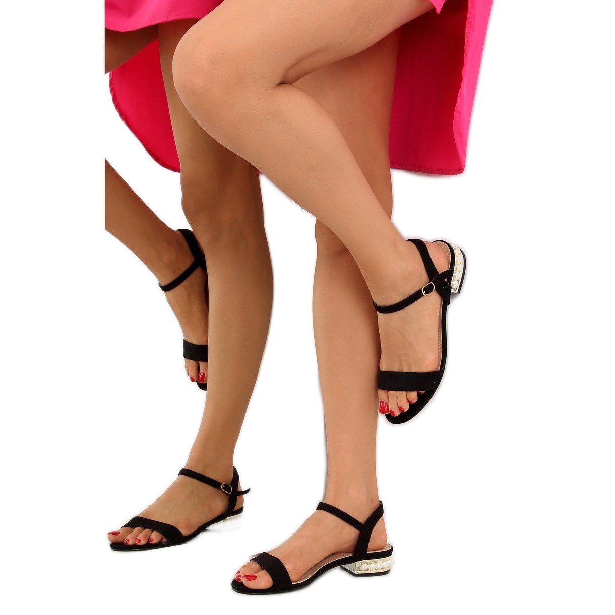 Detaljer: Högklackade sandaler med pärlor svarta 99-