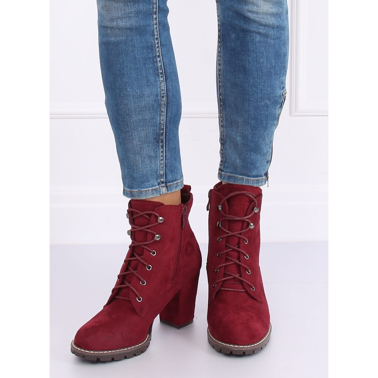 Detaljer: Högklackade snörstövlar 7081 Vin röd