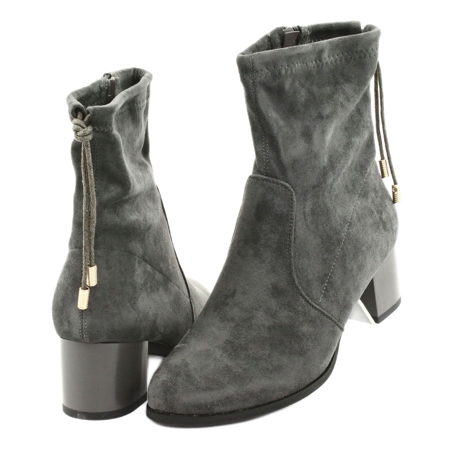 Vi presenterar Daszyński SA58 grå mocka högklackade stövlar, som är en perfekt kombination av klassiskt och elegans, vilket gör att varje fashionabel kvinna borde ha dem i sin kollektion. Dessa snygga ankelstövlar för kvinnor passar perfekt till både formella och vardagliga stilar och utgör en mångsidig del av garderoben.