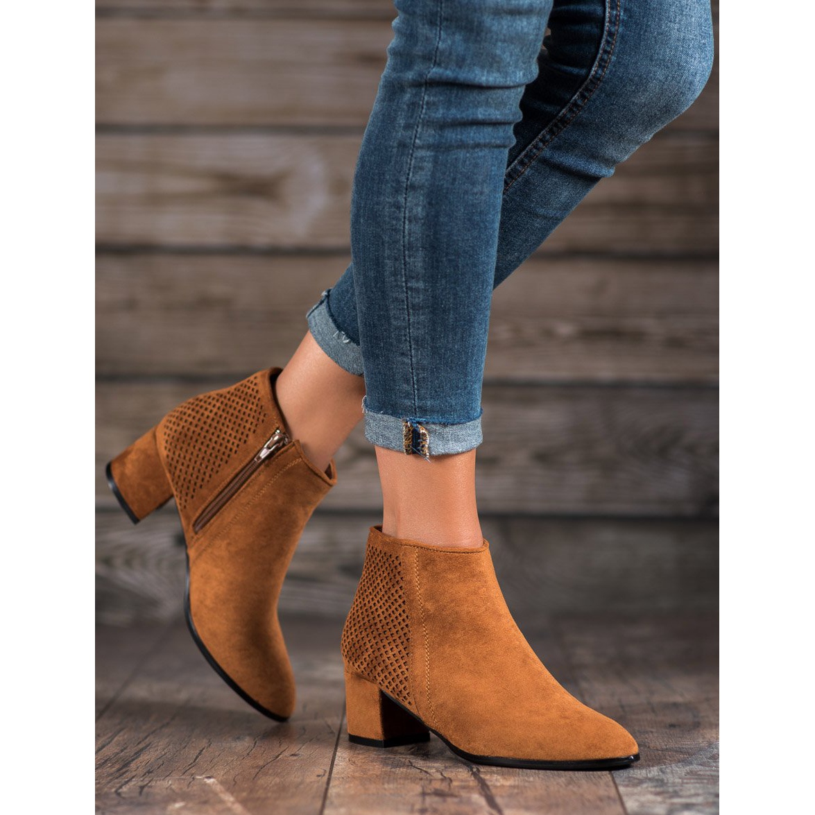 Den ankellånga ovandelen ger extra skydd och värme, vilket gör dessa stövlar perfekta för höst/vintersäsongen. En snygg accent är dragkedjan, som inte bara gör den lättare att ta på, utan också tillför en modern karaktär till det hela. Det finns ett genombrutet mönster på baksidan av skorna som subtilt diversifierar deras utseende.