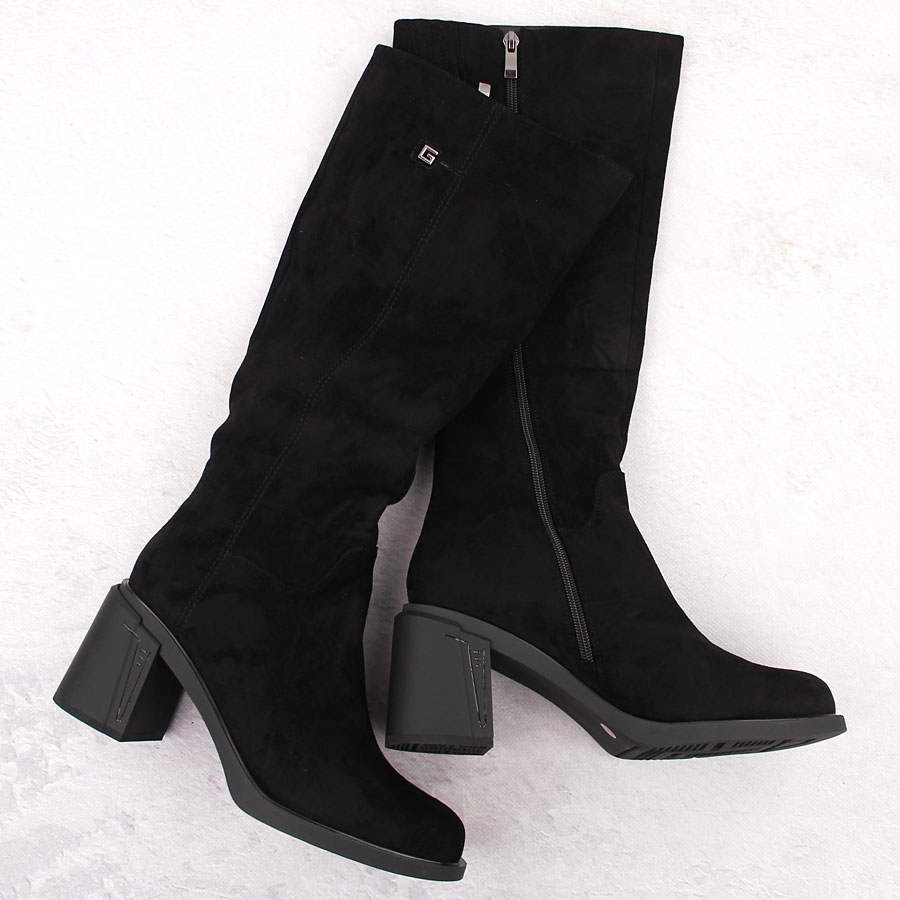Information: Högklackade stövlar i mocka, svarta, Potocki 60314