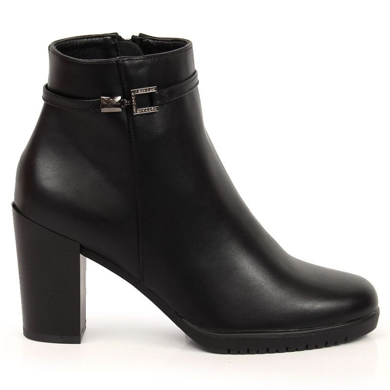 Stövlarna har en hög modell, vilket ger optimalt fotledsstöd, samt utmärkt stabilitet tack vare den 8 cm höga hälen i form av ett stolp. De är gjorda av en syntetisk ovandel och är resistenta mot växlande väderförhållanden, vilket gör dem perfekta för kallare dagar. Stövlarnas insida är fodrad med ett hudvänligt textilmaterial, vilket garanterar bärkomfort.
