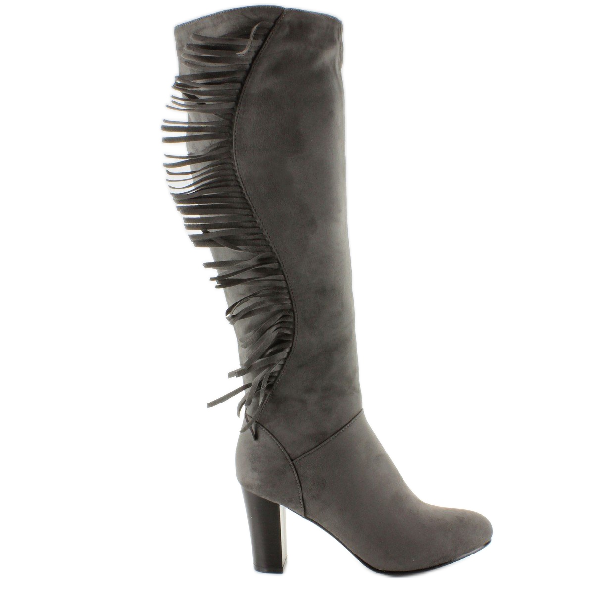 Inna marka Högklackade stövlar med fransar H615 Grå