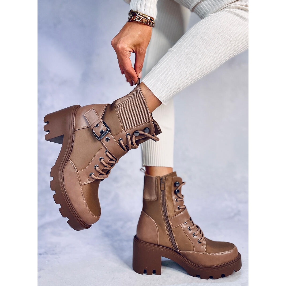 Detaljer: Högklackade stövlar med snörning Brooks Khaki brun