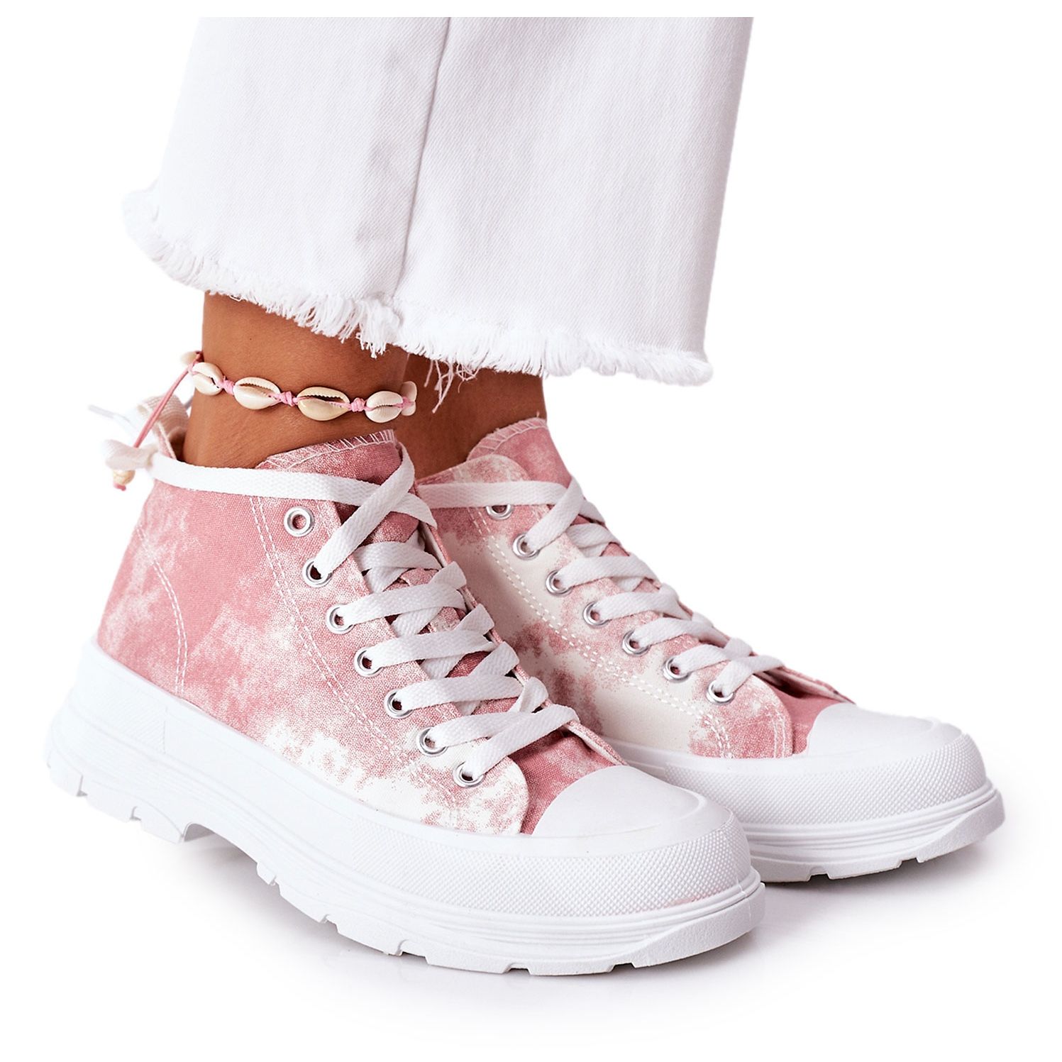 Detaljer: FJ1 Högrosa sneakers på stor sula med Tie-Dye Trissy-effekt vit