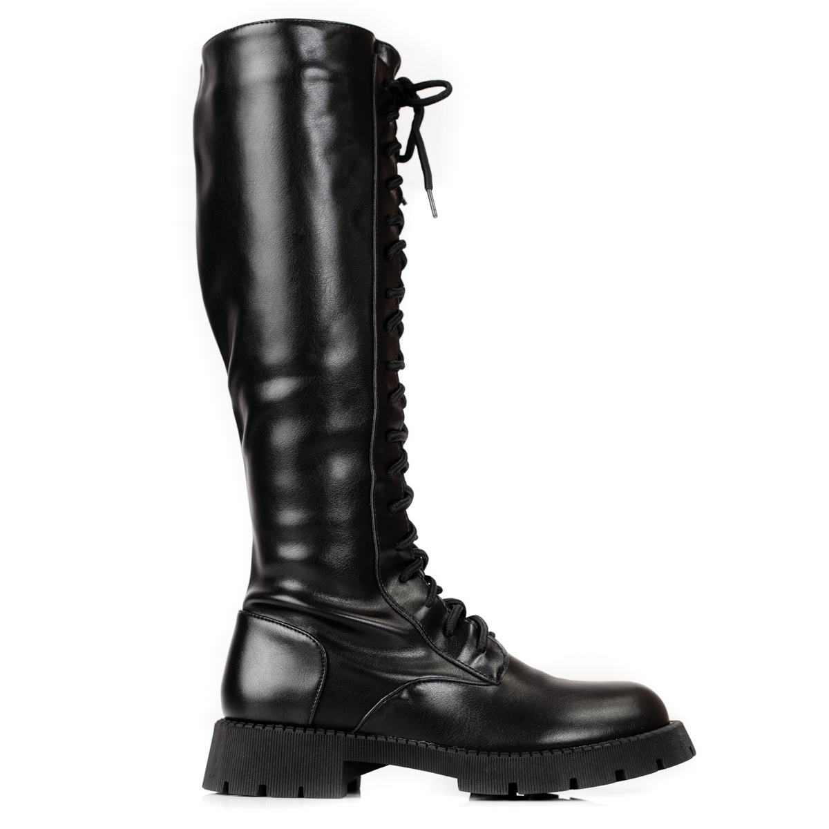 Elegant och funktionell - så här kan du beskriva höga, spetsade dambaggies från SHELOVET. Dessa svarta stövlar är en kombination av avslappnad stil med en antydan av militär karaktär, vilket gör dem till ett idealiskt val för kvinnor som värdesätter ett moderikt utseende och komfort under kallare dagar.