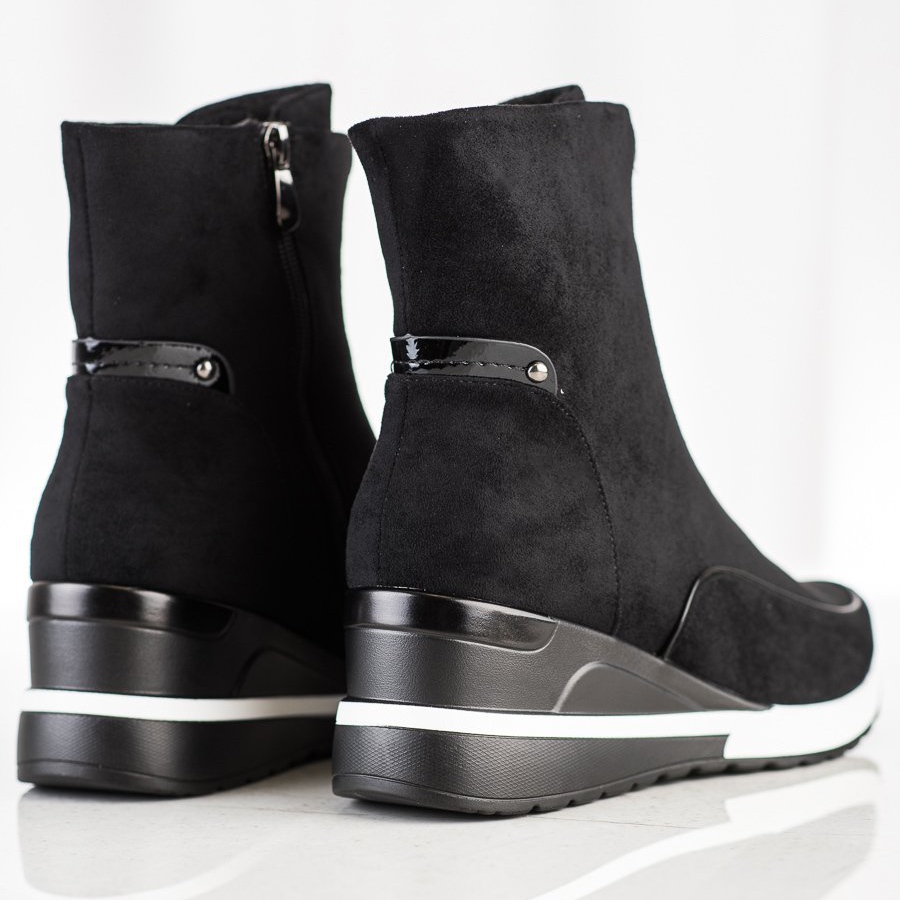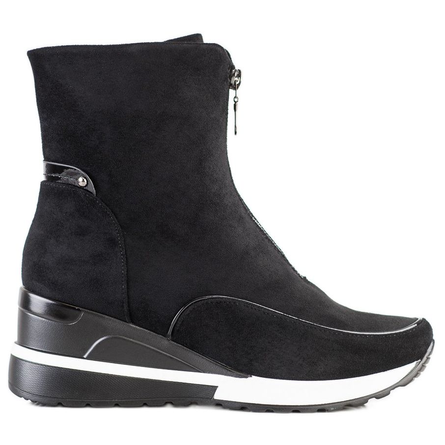 Upptäck elegans och komfort i VINCEZA High Black Ankel Boots, som kombinerar avslappnad stil med vardagsfunktionalitet. Dessa ankelstövlar för kvinnor är det perfekta valet för kalla dagar på hösten/vintern. Tillverkade av högkvalitativt ekoläder i mockaimitation, de ser extremt eleganta ut och är samtidigt miljövänliga.