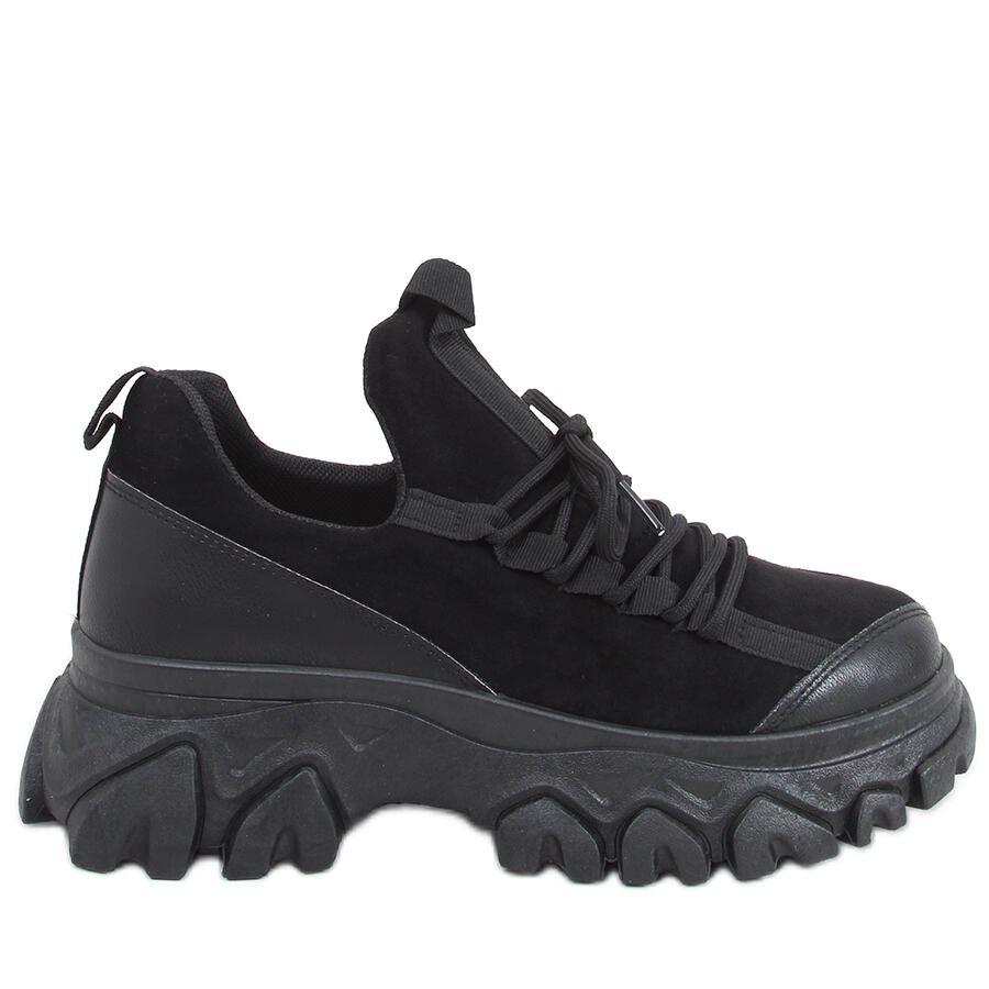 Huggy Black sportskor med hög sula är ett perfekt val för varje kvinna som vill kombinera komfort med en moderiktig look. Dessa iögonfallande svarta sneakers kännetecknas av en massiv 4 cm hög sula, vilket gör att de framhäver figuren perfekt och ger den lätthet och karaktär.