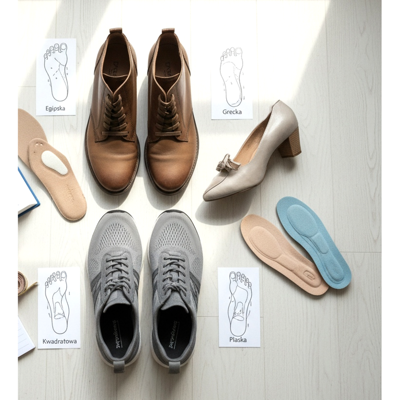 Platta fötter kräver i sin tur bra stöd mitt på foten. Skor med en tydlig anatomisk innersula, mellansulastöd och häldämpning är det bästa valet. Det är värt att överväga ortopediska innersulor som kan anpassas individuellt och flyttas mellan olika par skor.
