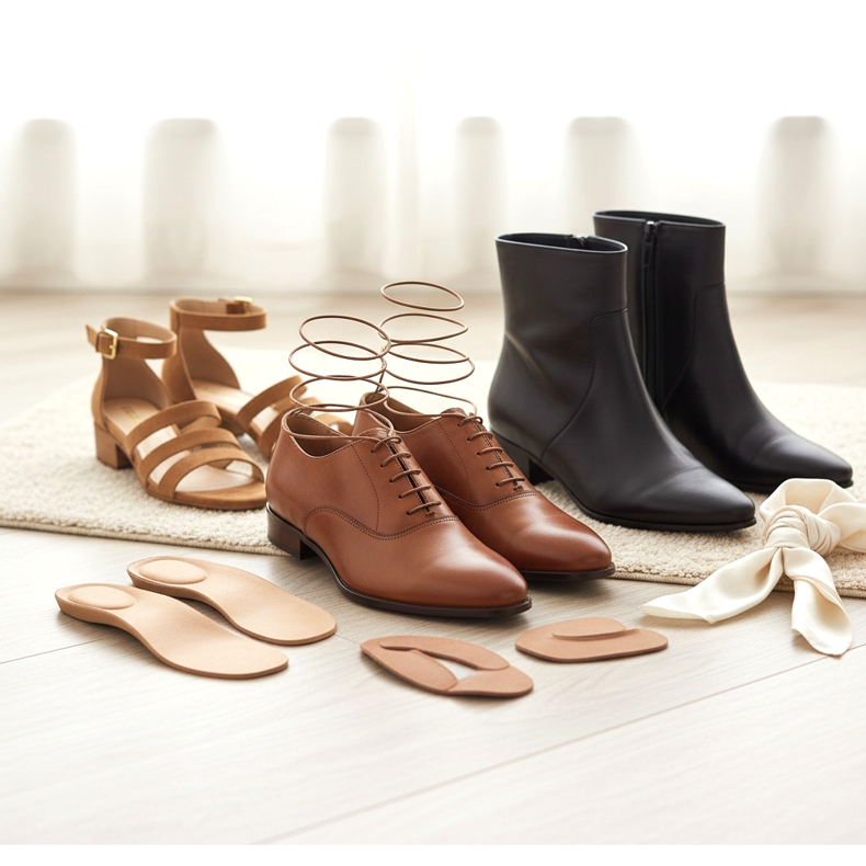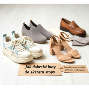 Skor med snören eller kardborre ger möjligheten att justera bredden - detta är en stor fördel. Sandaler med justerbara remmar är också ett bra val eftersom du kan anpassa remmen efter din fots behov.