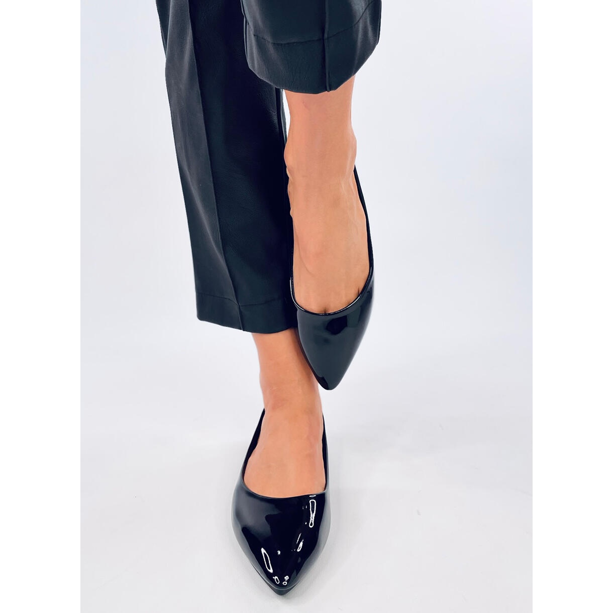 Detaljer: Ians Svartlackerad mandeltå balettlägenheter