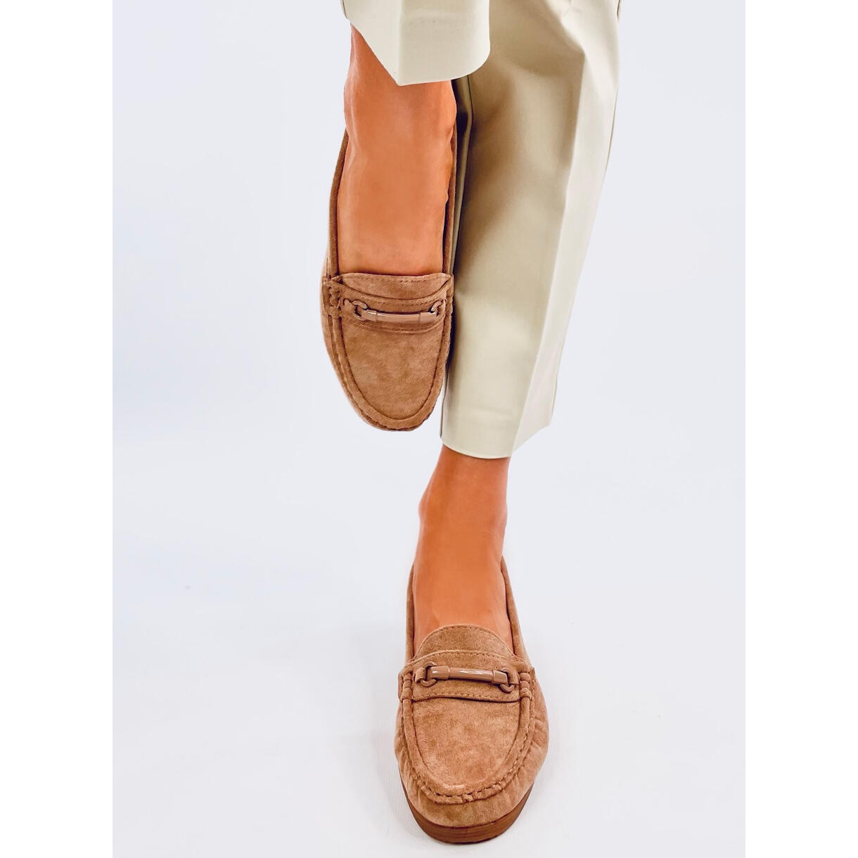 Vi erbjuder unika mockasiner för den kaki indiska kilen i beige skugga, som är perfekta för vardagliga stiliseringar. Dessa eleganta kvinnors skor, gjorda av högkvalitativa ekologiska mocka, kombinerar klassiker med modernitet. Deras subtila snitt med en delikat spänne ger dem en unik karaktär, och det släta materialet gör dem extremt mångsidiga.
