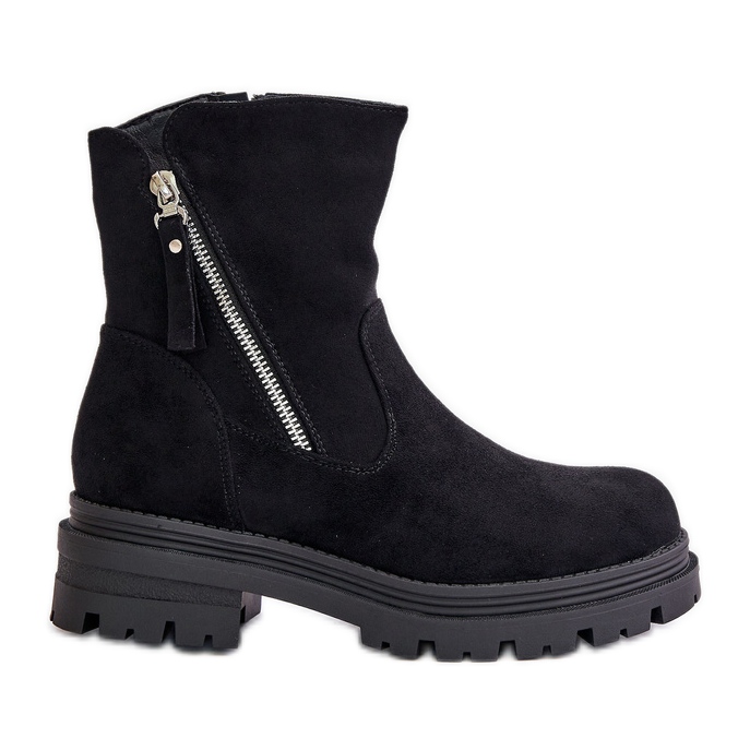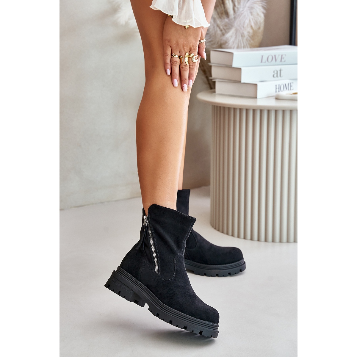 Denna modell är inbäddad på en platt häl och plattform, som garanterar stabilitet och bekvämlighet under dagliga aktiviteter. Rundade näsor ger skorna en subtil, feminin karaktär, och det inre fodrade med en mjuk skorfilt skyddar effektivt mot kyla, vilket gör dem till en idealisk lösning för hösten och vintersäsongen.