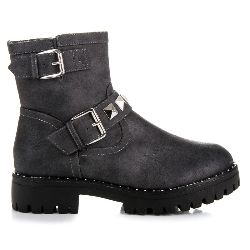 Vi presenterar grå arbetarbyxor från märket Kylie, som perfekt kombinerar mode med komfort. Dessa snygga stövlar är det perfekta valet för alla kvinnor som värdesätter komfort och originell stil. Tillverkade av högkvalitativa material garanterar de hållbarhet och perfekt passform till foten.