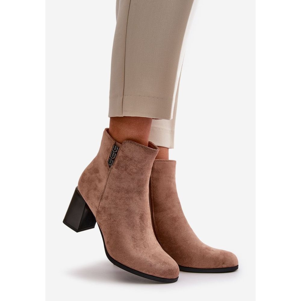 Inna marka Isolerade damstövlar i ekologisk mocka på hög klack, fästs med dragkedja, brun Erillia beige