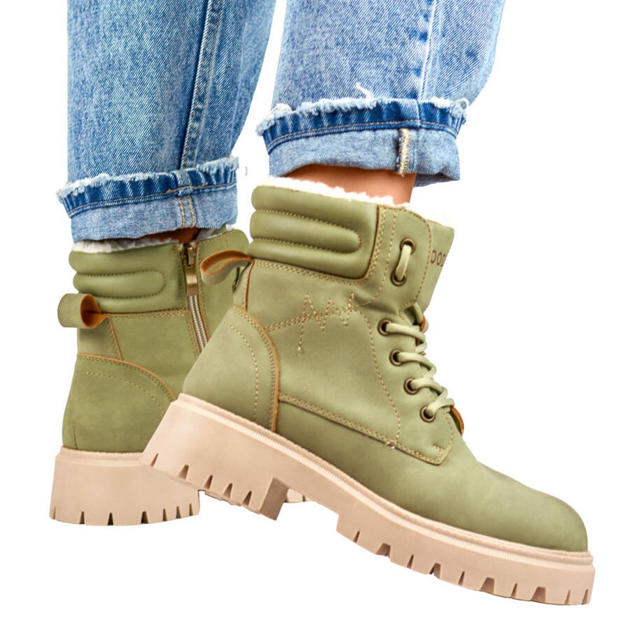 Dessa stövlar har en snörd lås som möjliggör individuell passning på benet och en extra skjutreglage, vilket gör det lättare att ta på sig och ta bort. Den runda näsan kommer att trösta alla damer som värderar komfort och lösare. Tack vare deras universella gröna färger kommer dessa fångare underbart att komplettera varje höst- eller vinterstylisering.