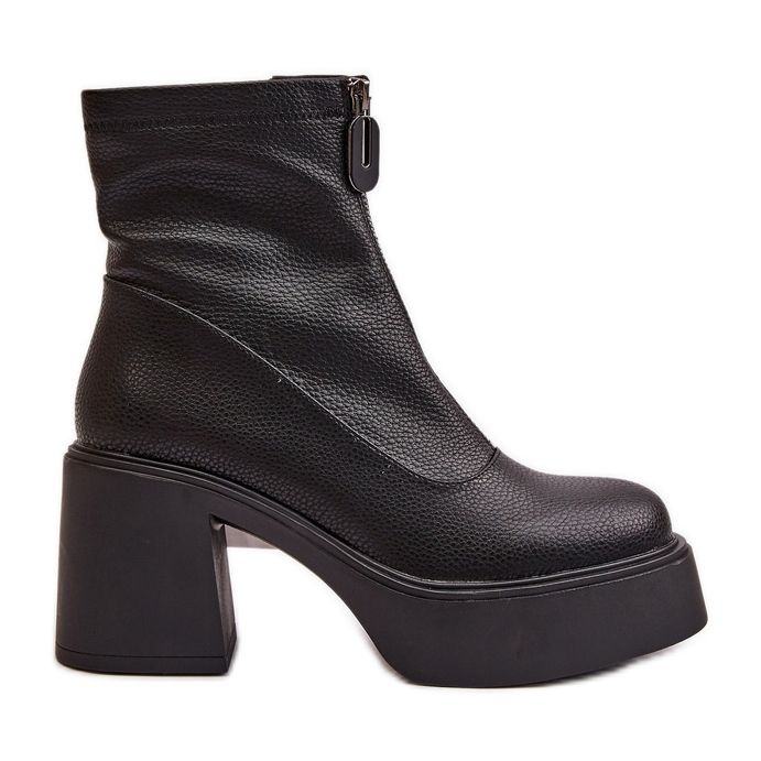 Ställ på en solid plattform med en höjd av 3,5 cm och en häl i form av en pelare med en höjd av 8 cm, stövlar kombinerar modern design med funktionalitet. Avrundade näsor tillför subtilitet, och det isolerade medlet från skorbladet garanterar värme även på de kallaste dagarna. Ett perfekt komplement till estetik är ett dekorativt lås framtill och ett praktiskt dragkedja som är placerat på sidan, vilket gör det lättare att ta på sig och ta av.