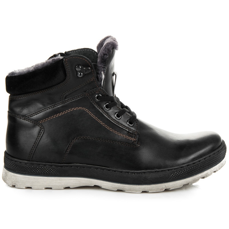 Solid, hållbar och redo för vintern - Lucca-modellen är ett förslag för män som värdesätter praktisk och sportig stil. Tillverkad av naturligt läder, den isolerade interiören säkerställer termisk komfort under frost, och snörning ger en säker passform till foten. Sulan med djupa spår garanterar bra grepp och stabilitet på hala underlag, så skorna är perfekta för vardagsbruk såväl som för lättare utomhusturer.