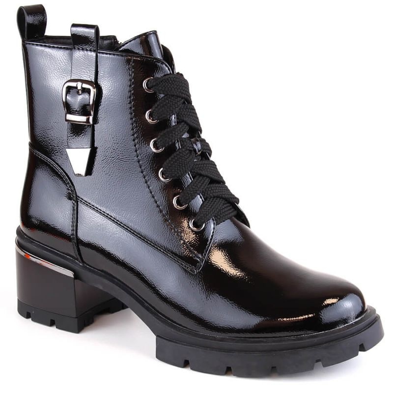 Praktiska lösningar, som ett sidoslott och snören, gör det lättare att passa och ta på dig skor. Den 5 cm höga hälen erbjuder stabilitet och subtil ökning, och cirka 13 cm den övre lindar kuben väl, vilket ökar skyddet mot kyla. Textilinsula ger ytterligare mjukhet när du går.